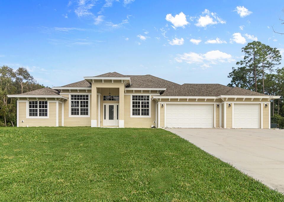 GRAND NEW! FIT FOR A KING AND QUEEN. THIS HOME HAS IT ALL 4 BEDROOMS 3 FULL BATHS PLUS OFFICE/DEN. ADDTIONAL FEATURES INLCUDE COVERED PATIO WITH AN OUTDOOR KITCHEN. 3 CAR GARAGE ON A 1+ ACRE HOMESITE. FEATURING 36'' TILE AND WOOD LAMINATE IN ALL BEDROOMS. KITCHEN HAS GRANITE COUNTER TOPS ALL STAINLESS-STEEL APPLIANCES WITH TWO OVENS, LARGE WHITE WOOD CABINETS, STAINLESS STEEL RANGE HOOD VENTED TO THE CEILING. HIGH HAT LIGHTING, CEILING SPEAKERS. MASTER BEDROOM FEATURES TRAY CEILINGS HIS AND HER GRANITE SINKS. GLASS SHOWER AND HUGE WALK IN CLOSET. FULL OUTDOOR KITCHEN WITH 6 GAS BURNERS AND GRANITE COUNTER TOPS. HOME HAS FULL IMPACT WINDOWS AND DOORS ALL THIS AND MUCH MORE NO HOA BRING THE BOAT AND RV!