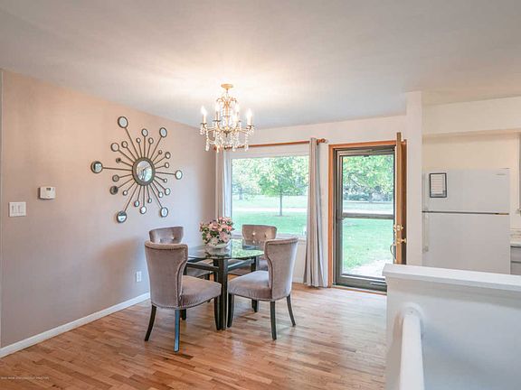 Welcome home to 12821 E Melody Rd! This wonderful 3 bed, 2bath, all brick ranch style home is situated on a large .72 acre parcel in River Park Subdivision of Grand Ledge, MI. The main floor of this home features a nice open floor plan and consists of the living, dining, and kitchen areas in addition to all 3 bedrooms and 2 full baths. The updated kitchen offers nice cabinetry countertop space overlooking the living area. The basement consists of a large finished family room with new carpet, a potential 4th bedroom, and a walkout to the backyard! Outside, enjoy scenic views of the pond and natural landscaping! Additional features of this home include: fresh paint, newer roof, hardwood floors, an attached 2 car garage, and deeded river access!