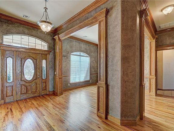 Price Reduced!!!!Beautiful rock & stone home built by SWM. Large dining room with wood floors, beautiful woodwork in formal living with double tray ceiling. Large study with lots of built-ins, french doors and hardwood floors. Open Kitchen w/Corina counter tops, island, & built-in hutch/desk. Family room has vaulted ceiling, built-in entertainment center, gas fire place, hard wood floors & surround sound system. Large utility room with sink & built-in ironing board. Huge master bedroom, tray ceiling, double vanities, whirlpool tub, separate shower. Spacious master closet with lots of built-ins. All bedrooms are good size with 2 being adjoined by a jack-n-jill bath. 4th bedroom is a second master bedroom with its own full bath.Over sized three car garage with storm shelter & extended oversize driveway. Zoned sprinkle system & every other amenity you could imagine. Custom built, one owner home! Don't miss out on this great home in a gated community Choctaw Schools!!