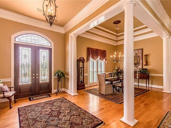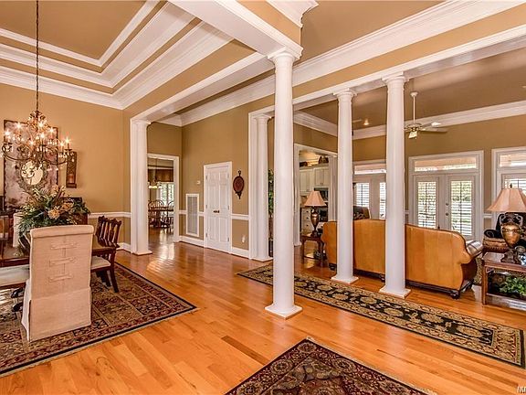 Elegant home on 10 acres and from the entrance through the lead glass double doors and throughout, the home is loaded with extras. The foyer, formal dining room with double box ceilings and living room are all open with 10-12' ceilings, wood flooring. The kitchen, breakfast room and gathering area/den/family room are all open, great for entertaining family and friends. The kitchen has granite counter tops, island with gas cook top and two ovens, stainless appliances, ice maker as well as the refrigerator ice maker, breakfast bar and breakfast area. The Bathroom off kitchen has shower. The Master Suite is large with 10'12' and 14' ceilings, sitting area with door to covered patio. Master bath is so spacious and has double vanities, large jetted garden tub, double closets. There are three additional bedrooms downstairs with jack and jill bath, one bedroom with its own bath. Upstairs is a bedroom, bath and den/family room. All the rooms are spacious. Patio and beautiful wood deck, lots of attic storage, intercom system, barn large enough to possibility store motor home (depending on height of motor home) and has bath and kitchen. Also has a dumping station. There is a well on the property too, a beautiful fountain in front of home and a pond! So many extras. Lots of space but close to all the conveniences of shopping, restaurants, 1-65, and more!