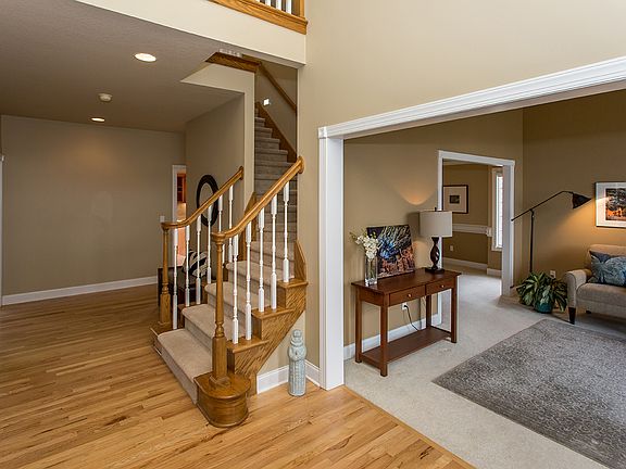 Freshly updated, elegant home in Timberline is close to I-80/I-35, one block from Des Moines Christian, & attends award-winning Webster Elem. Set on gorgeous 1/2 acre lot in upscale neighborhood, the open floor-plan welcomes visitors with 20 ft high atrium entry, which flows into formal family room & dining room. Updated kitchen shines with new high-end stainless appliances, including KitchenAid Gas Cooktop, & quartz counters. Large living room contains newly enameled built-ins, new carpet, fireplace, and generous windows that flood this home with light. Private den, 4 newly carpeted spacious bedrooms up, and 1 bedroom down in finished walkout, which opens to deluxe (2014) outdoor hot tub. Home is plentiful in storage space, including enormous master walk-in closet. Premium Anderson Windows, landscape lighting, reverse osmosis system, water softener, recently added dual zone furnace/ air. Central vac, sprinkler system, and professionally landscaped yard make this home a