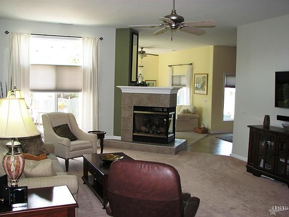 CUSTOM BUILT ONE OWNER BETTER THAN NEW - EVEN BY PRICE. Theres a delightful open, split bedroom floor plan with 9 ceilings, 3 sided fireplace between the kitchen, nook, expanded morning room, and great room: plus an oversized 3 car garage and patio for outdoor enjoyment. The master suite has a jetted tub and separate shower, double vanities, and walk-in closet - in fact all closets are lighted and have custom built organizers. The kitchen is open specifically for entertaining, has stainless appliances, and recently upgraded fixtures. All interior and exterior painting is as fresh as it gets. With space saver pocket doors, lots of natural lighting, wonderful hardwood, custom window shades, professional landscaping, excellent location and neighborhood you know this is a good home for you the minute you walk in! Compare price and amenities then let's make your offer! Call/email today for a personal inspection.