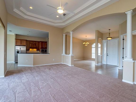 This stately home boasts numerous upgrades, a great room floor plan with 3 bedrooms, 2 baths, 3 car side load garage and office with double french doors. The home was just freshly painted inside and outside plus new carpeting and padding was just installed. Home shows well and is in like new condition inside. Featuring crown molding, tray ceilings, 8 doors, 10 high volume ceilings, 20 tile and an open floor plan that is ideal for entertaining. The large gourmet kitchen has a breakfast bar, SS appliances, granite counter tops, tile back splash, 42 all wood cabinets with upper and lower molding and lighting. The great room, kitchen, and master bedroom all have breathtaking views of the Lake and access to the screened lanai. The large master suite has a tray ceiling, crown molding, sitting area and two large walk in closets. The elegant master bath has double vanity counters, a garden tub with a large roman walk in shower and a separate water closet. The 2nd and 3rd bedrooms is ideal for guests. The extra-large lanai is great for entertaining and is perfect for watching the sunset in the distance over the lake. The community is loaded with amenities for the whole family to enjoy including, walking/biking trails, fishing, basketball, tennis, playground, sports fields, fitness, and a clubhouse. Dont miss your chance to see this home and be a part of this wonderful active community.