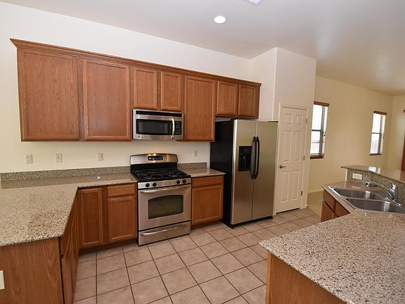 Great location in Rancho Vistoso Oro Valley with beautiful mountain views. This like new home has a gorgeous kitchen with granite counters and stainless steel appliances including microwave & refrigerator. Kitchen opens up to great large great room perfect for entertaining. Spacious master suite with dual vanities, separate shower/tub & large closet. Other features include split bedroom plan, covered patio, nice sized private yard, separate laundry room and 2 car garage. Neighborhood park nearby with play ground!