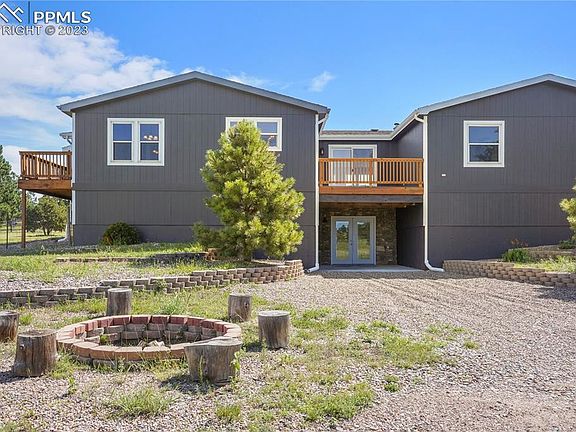 Step into your dream home nestled within the tranquility of sought after Black Forest. Spread over nearly 5 acres with a perfect mixture of lush green meadows and mature ponderosa pines. The home boasts 5,000 square feet of recently renovated living space. Perfect for multi-generational living or guest accommodations - two laundry rooms, two kitchens, two primary suites, one on the main level and one on the lower level, each with a private bath and walk-in closets. Spacious floor plan with 4 bedrooms, an office and 3 baths. Recent upgrades include new furnace, carpet, luxury vinyl plank flooring, lighting, new deck and interior/exterior paint, adding a fresh and modern touch to this charming, well cared for home. Expansive living room with a traditional wood stove, a wall of large windows with great natural light and vaulted ceilings. Main level family room with gas fireplace, built-in office/desk and open to the kitchen. The kitchen had an abundance of cabinetry for storage, an island, newer stainless appliances and a breakfast bar with pendant lighting. Dining room with a built-in buffet, plant bench and a walk-out to a private deck. The finished walk-out lower level offers the perfect multi-generational space with a large suite, secondary kitchen, family room/game room area and an unfinished tiered seating theater room awaits your personal touch. Energy efficient and high quality vinyl windows throughout. Step outside to your own private retreat complete with two decks and a lower level patio, offering the ideal places for entertaining, relaxing, or simply enjoying the stunning natural beauty or your acreage. Outside, you'll find a 3-car garage, loafing shed, greenhouse. The acreage is completely fenced with a pasture area and a front gate. No covenants or HOA so this is a perfect opportunity for horse/animal lovers. Outbuildings and RV friendly. This Black Forest gem is more than just a home - it's a lifestyle. "Virtually Staged photos"