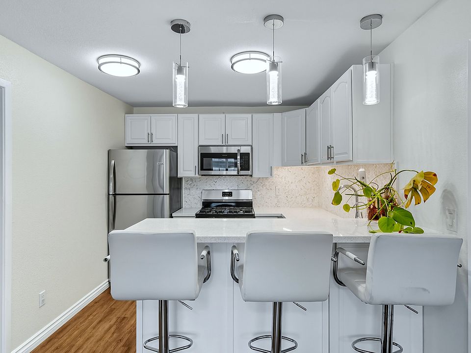 Modern Conveniences: Enjoy the convenience of an in-unit washer and dryer, plus a fully equipped kitchen with included appliances.