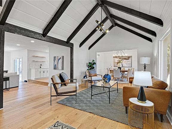 COMPLETE REMODEL IN AND OUT --Living, dining, kitchen, great rooms and HALF BATH on ONE LEVEL!!!! Absolutely GORGEOUS Engineered Wood Floors throughout Main and upstairs hallways! Maintaining it's character with High Vaulted, Wood Beamed ceilings in the entryway and formal living room! Kitchen includes high end soft close cabinets, quartz counters and black stainless steel appliances! Additional built-in wet bar in the kitchen that opens up to a HUGE family room with brick fire place! Redone master suite has nice & large walk-in shower including built-in bench, recessed storage and dual vanity! Finished part of basement with family room and rec room space can be used as additional living, workout area or whatever you want! Still more space unfinished for storage! NEW SIDING, DRIVEWAY & PAINT OUTSIDE! Nothing left to do but MOVE-IN!