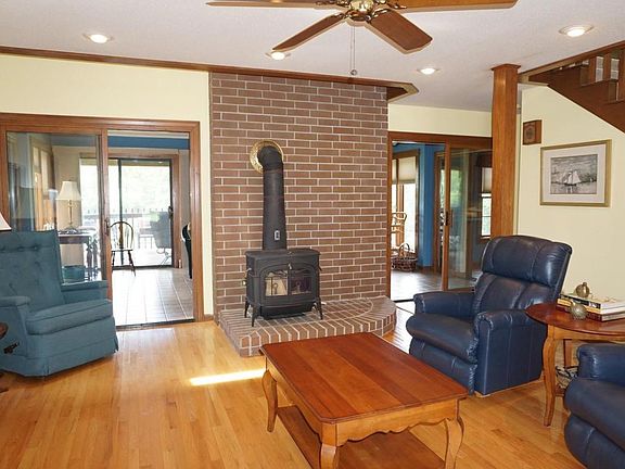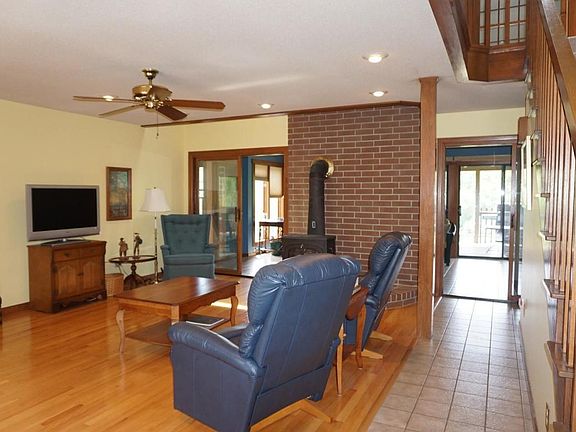 Hidden jewel on 30 secluded wooded acres in Republic. It's a story 1/2 rustic contemporary with w/o basement. The main level features the living room with hardwood flooring & a wood stove & has access to the large sun room with tile flooring & 2nd wood stove. The eat-in kitchen has tile flooring, custom oak cabinetry, great pantry & double ovens. The utility room & master suite round out the main level. Upstairs is a landing, 2 bedrooms & bath. The w/o basement includes a rec room with 3rd wood stove & wet bar, bedroom, bath & John Deere room/workshop/garden room. In back is a covered deck, patio, water feature, and ground level pool with new liner. There are trails & a creek throughout the wooded acres. Also has zoned heat & air, water softener & purifier. Spectacular setting!