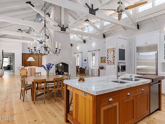 Welcome to Marigold Ranch, a one-of-a-kind property perfectly resting in theexclusive Tanque Verde Valley.As you approach this home, your eyes are delighted by the true essence of thisSouthern Arizona masterpiece. As Shakespeare is to literature, this home is toluxury in every aspect. Fashioned after historic, sprawling Texas ranches,Marigold features a wrap-around porch that brings the desert to your toes.This home was built with solid block construction walls featuring E-Crete, anenergy-efficient aerated concrete system. The resulting thick exterior walls arefinished with stucco and a natural pigment lime wash, giving a sunny golden-hueto the exterior. A pitched standing-seam steel roof reminiscent of old ranchbuildings sheds seasonal rains into planting areas around