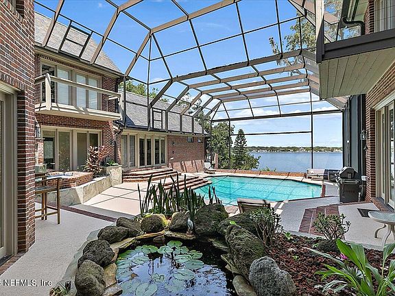 Panoramic views from this riverfront BLUFF Masterpiece , DEEP water river front with direct, easy access to the Atlantic Ocean, with high elevation and gorgeous gentle slope to boat lifts, docks and charming dockhouse. This iconic riverfront estate offers an unparalleled lifestyle for those who crave elegance, tranquility, and adventure. Perfectly blending luxury with nature, this property is designed for those who love to entertain, relax, and embrace the water. This deep-water home is a boaters and fisherman's dream. Enter through a private gate with a lush drive to the gorgeous, stately brick home with 8500 sq. ft. of living space, on a 1.53 acre lot. Natural slate stone roof. Dramatic 2 story entry and staircase, marble and wood flooring, exposed beam ceilings, new state of the art kitchen, lovely living and dining room, office and primary bedroom on first floor. Double story screened pool and hot tub with river views. Riverside features new docks, bulkhead and dock house Enjoy waterfront living with all the security and privacy you can imagine. See more