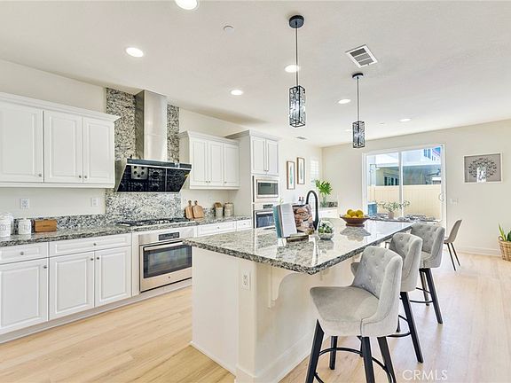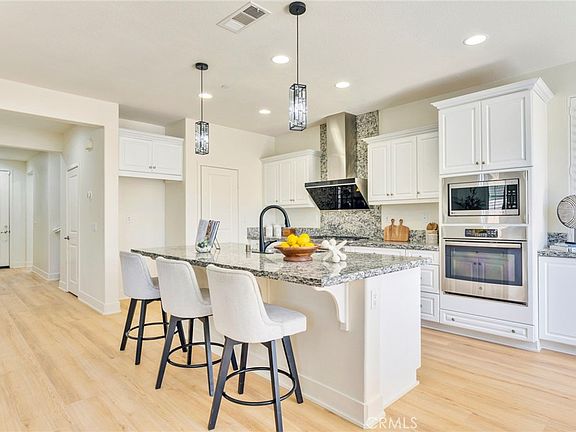 Newly renovated 4 bedroom 3 bath single family residence conveniently located in the heart of Eastvale. The owner recently upgraded the house with new wood floors, installed beautiful light fixtures, and repainted the house for the next homeowner. Entering this lovely home through a foyer, you will be presented with a bright open floor plan: the kitchen & dining area on the left and the living room & fireplace on the right. The large windows and glass sliding doors in this open floor space allow natural light to shine through, making the entire area bright and inviting. The fireplace has a unique natural stone accent wall. The spacious kitchen features a large center island with a big sink, plenty of storage cabinets, a pantry, granite countertops, tiled backsplash, and appliances which include a built-in range with a 6 burner stove, double oven, range hood, dishwasher, and microwave. The main floor has 1 bedroom and 1 bathroom. The master bedroom and 2 other guest bedrooms are upstairs, and a beautiful loft space can be used as a workplace or a family room. New vanity lights were also installed in all bathrooms. The backyard planted multiple flowers and installed white privacy fences. This quiet and friendly neighborhood also provides a community swimming pool & jacuzzi and a picnic & barbecue area 2 minutes from the house. The property is within walking distance from the elementary, intermediate, and high schools. Minutes drive to the marketplace Hammer Place, shopping centers, the coming-soon Eastvale downtown area, state highways 91 & 60, and interstate highway 15.