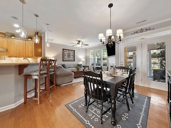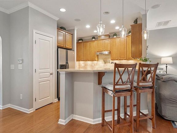 Fantastic Location - Easy access to Wake Forest, Downtown Raleigh, HWY 98 to Research Park. 3 B/R Townhome - all B/R's large. Hardwood Floors down are beautiful, lots of custom trim details, screened patio walks out onto expanded outdoor patio w/grilling area. Garage floor w/epoxy coating. Loft at top of stairway perfect for reading nook, home office, crafting. This is a ONE OWNER Home that has been meticulously maintained. Tons of added features: Pot Filler over stove, Café Series 6 Convection Oven & Dishwasher, comfort height water closets, soft close cabinets in kitchen & baths, auto lighting in pantry. HVAC is 14 Seer new in 2017. Double Vanity in Primary Bath. Carpets replaced in 2021. Whole house water filter. Home lives like brand new!