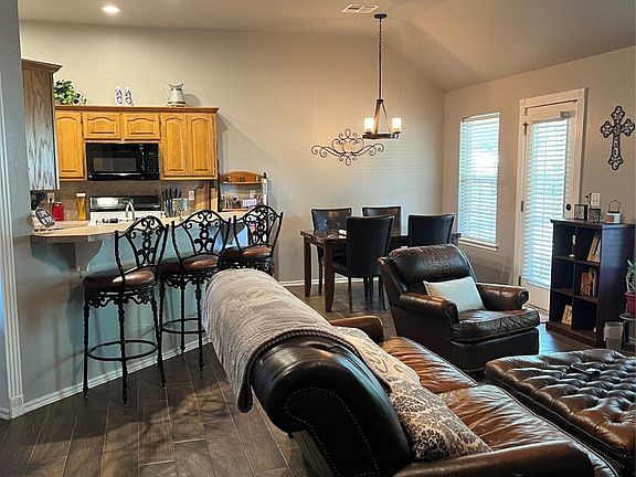 Great home in a nice neighborhood, located close to schools and shopping! Three bedrooms, two bathrooms, open floor plan, vaulted ceiling, recently painted interior and exterior, and wood tile added. And the backyard is awesome! Large, beautiful shade trees, covered patios, a fire pit, and a beautiful view of sunsets. A 20x20 shop/shed in the backyard, also! Come take a look at this one!