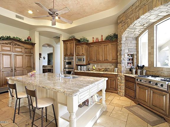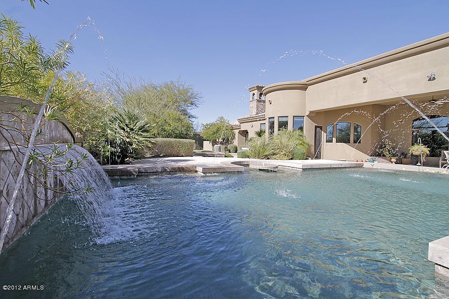 LUXURY LIVING AT IT FINEST. Enjoy STUNNING MOUNTAIN VIEWS from this masterpiece designed by Mike Foster Custom Homes.This 4BR/3.5BA + exercise room and game room boasts 5219sf of luxury on nearly an acre. This home incorporates every amenity imaginable.You will be greeted by lighted dome ceilings,canterra stone accents and tumbled travertine floors. Spacious gourmet kitchen w/ granite, sub zero appliances, Viking gas cook top, double ovens and custom Alder cabinetry.Great Room features canterra stone fireplace, wood beam ceiling and built in cabinetry. Backyard is entertainer's paradise w/negative edge pool and arched fountains, heated spa and built-in BBQ. Top rated schools and McDowell Sonoran Preserve nearby. See doc tab for complete list of the features.Great attn to detail and quality throughout.