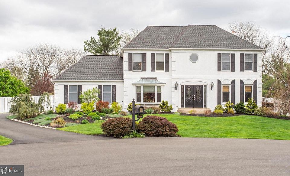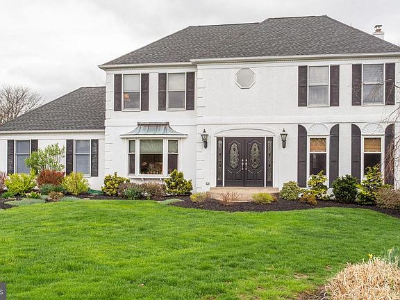 Exquisite Colonial in the desirable Hampton Chase community, located in the heart of Bucks County and the award winning Central Bucks School District. As you drive into this welcoming cul-de-sac you will be greeted by the lavishing curb appeal that has been professionally landscaped and then step up to the double door which enters into the two story foyer that is wrapped with a beautiful custom oak wood staircase and ceramic tile flooring. Formal Dining Room with crown & chair rail molding with hardwood flooring, perfect for your family gatherings, Living Room with crown molding & wainscoting, glass french doors that leads into the Family Room with a custom granite wall wood burning fireplace that can be re-converted to gas burning touched with a wet bar area. Opens to the lovely Kitchen that is topped with granite countertops, stainless steel appliances, maple wood cabinetry, finished with ceramic tile backsplash and a peninsula with breakfast bar seating. Attached Dining Area that includes a custom made matching granite top Dining table with 6 chairs. Slider door entry to the rear yard. Mud room with built in shelving & coat rack, and utility sink that leads to the three car attached garage. First floor Powder Room. Second floor offers a large Master Bedroom with crown molding, walk-in closet that includes your laundry area for your convenience. Master Bathroom with vaulted ceiling with skylight, dual sink separate vanities and jetted soaking tub. Three additional nicely sized bedrooms that include ceiling fans and ample closet space and a hallway full bathroom with tub/shower combo. Now there is more.. Full finished basement that has a fabulous bonus lower level which is ideal for a game area, or your Theatre room. Enjoy all your outdoor activities on the gorgeous custom paver patio with a built-in BBQ, relax in the heated in-ground pool with jacuzzi and nicely sized rear private fenced yard. Surround sound system indoor and outdoor, newer roof, newer carpet