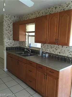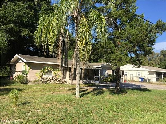 Wonderful single family home in North Fort Myers just minutes from downtown and the Caloosahatchee River. The house is literally across the street from a friendly small fire station. It includes a 'double lot' with a private 5 ft. chain link fence surrounding- perfect for a small business person or storage of recreational vehicles. New carpet in the bedrooms. The kitchen is fully operational with lots of cabinet space, as are the bathrooms. Fresh paint throughout. The fully private guest quarters features its own bathroom, kitchen, and entrance! Driveway and lanai areas are complete with pavers and are screened in for outdoor enjoyment. There is tons of storage area and unlimited potential with the vastness of the property. The roof was redone in 2018. Please see land survey attached for detail of large lot & many trees in the back completing a privacy location.