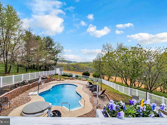 Frame the view! This home on a beautiful 1.09 A site backs to magnificent views of fields, forests, and valleys. FUN IN THE SUN! Dive into your own saltwater pool, or enjoy an evening watching the magnificent sunsets over the hills, from your built-in heated jetted spa. All surrounded by a beautiful paver patio, and maintenance free fencing. Inside this home you will find a freshly painted home, with luxury vinyl plank flooring on the first floor, new carpet in the bedrooms and lower level, updated baths and all new ( in 2011) kitchen. The kitchen showcases hardwood flooring* S/S double dishwasher*S/S double oven range*S/S double freezer refrigerator. The cabinetry is super organized and topped with granite - and there is a full sized pantry as well. Master suite features full bath, walk-in closet and views of the valley. The lower level has a large family room with gas fireplace, 1/2 bath, and Laundry room with access to the outside. No worries here either - this family put in a new HVAC both furnace and A/C in March of this year, new programable hot water heater in 2014, new roof in 2012,new well pump in 2011, rebricked the fireplace firebox in 2016 and installed a gas insert. Super sized 2 car garage. 2 large sheds. fenced yard. All ready for you!!
