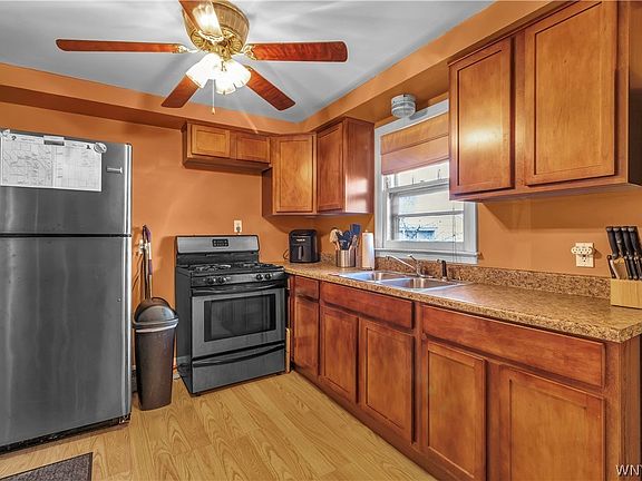 Welcome to 1283 Brighton Rd! Back on market due to buyer financing. Here's your opportunity to own this great property! This charming 3 bedroom cape offers an updated eat-in kitchen, renovated bathroom ('21),new upstairs windows('17), new hot water tank('20), a stamped concrete patio overlooking a large fully fenced yard, newer furnace, central air and 2nd floor carpet. Hardwood floors under carpet on first floor! Second usable kitchen in basement along with area to use for rec room/office and plenty of storage! You wont want to miss this opportunity in the desirable town of Tonawanda and close to the thruway and all conveniences! 2022-09-27