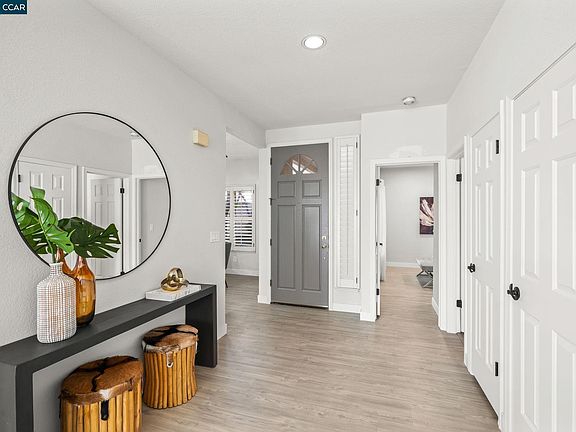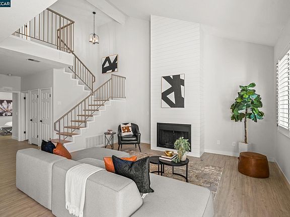 This Gorgeous home offers prime golf views, it’s not only turn-key but behind the gates of Canyon Lakes Golf Course. The backyard offers views of the 16th fairway in Canyon Lakes. This home is beautifully remodeled it has over 2,400 sqft. living space with 3 bedrooms + bonus room, 3 bathrooms (1 bedroom/1 bathroom downstairs) the open floor plan feature’s a cozy fireplace, bright, soaring ceilings, new recess lighting, new flooring, and new paint throughout. The renovated kitchen offers new appliances and quartz countertop. Upstairs offers a master suite that overlooks the 16th fairway, a walk-in closet, remodeled master bathroom suite where you can relax in the stand-alone tub. Down the hall features the laundry room, updated bathroom, a stunning oversized bedroom connecting to the bonus room, great for families and for entertaining. This charming neighborhood is close to Iron Horse Trail, Trader Joe's, City Center, restaurants, shops, Central Park, and top-rated schools in San Ramon.