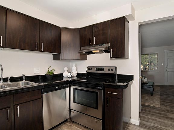 Private enclosed corner patioPrivate patioDining roomGarbage disposalCarpet bedroomsVinyl plank floorTiled kitchen cabinets