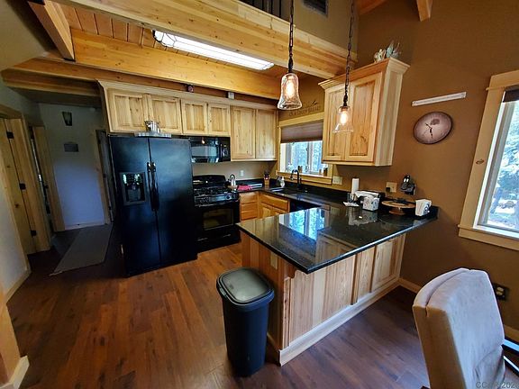 Like-new 2 bedroom plus loft cabin is the opposite of a fixer. Built with the latest building codes, such as interior fire sprinkler systems, this cabin was designed for low maintenance. The full-sized front deck is covered for easy winter access. Cement board siding and a metal roof protect the home from the elements. The black granite countertop kitchen is open to the living room. Open beam ceilings give the cabin a sense of spaciousness. New forced air furnace system was added recently. Plus there's a propane wood style stove in the living room and in the master bedroom. The cabin comes mostly furnished and ready to use.