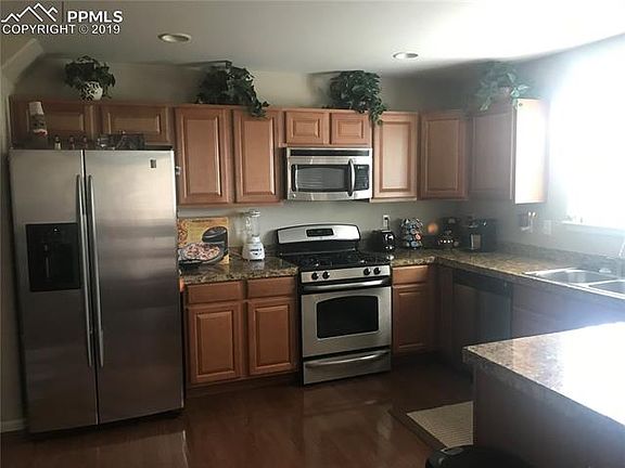 Well maintained, granite countertops in kitchen, stainless steel appliances, trash service included. Covered patio covered front porch. Close to schools easy access to I-25 and shopping