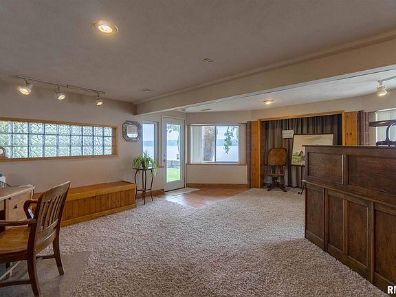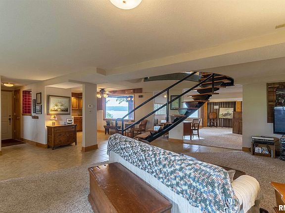BEAUTIFUL riverfront property with panoramic view! Riverfront retreat includes a portable dock & a boat house with winch boat launch. You’ll love the extra 14’ x 24’ detached garage with attic storage. Large concrete pad is ideal to park your boat or motorhome. Unique 3 bedroom home features 3 tiled bathrooms. Tiled entry leads into the fireplaced living room. Main floor family room offers a built-in Murphy bed (great for company!) and access to the covered patio. Huge laundry room features extra cabinetry. Wide spiral staircase leads to the 2nd floor. Spacious great room with cathedral ceiling, hardwood floor & amazing views! Flex space in the tiled sunroom and den/home office. Large formal dining room with bay window. Fully applianced kitchen offers newer granite countertops & spacious walk-in pantry. Informal dining area with a freestanding woodburning fireplace. Master bedroom en suite with private bathroom. Well maintained by the same owners for over 20 years! Truly a unique find!