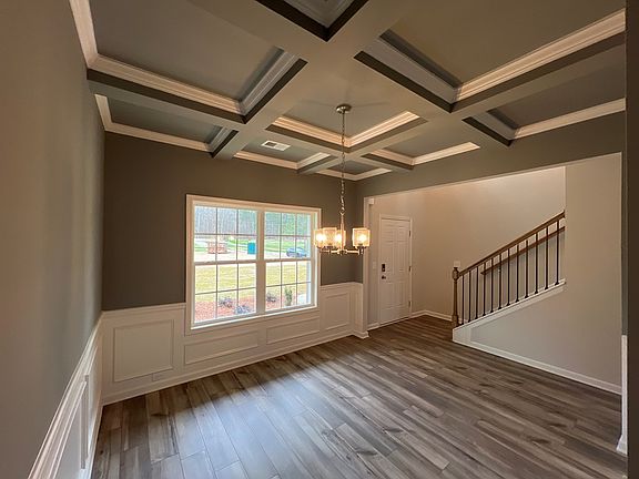 Absolutely Top of the Line! Immediately Greeted with a Stunning 2 Story Foyer, Formal Dining Room Boasting Wainscotting & Coffered Ceiling, Expansive Great Room w/ Wood Burning Fireplace, Charming Kitchen featuring Stylish Cabinetry, Granite Countertops, Tiled Backsplash & Stainless Appliances. Large Kitchen Island overlooking Breakfast Area. Spacious Pantry for Additional Storage. Owner's Entry Boasts our Signature Drop Zone, the Perfect Family Catch All. Laundry & Half Bath conveniently tucked on Main Level. Upstairs leads to Light Flooded Owner's Suite. Owner's Bath w/ Garden Tub, Tiled Shower, Double Vanities & Generously Sized Walk-in Closet. Additional Bedrooms are Bright w/ Plenty of Closet Space. Full Bath conveniently adjacent to Bedrooms. Durable LVP Hardwood Flooring on Main Level & Tons of Included Features! Our Signature Gameday Patio w/ Wood Burning Fireplace is the Perfect Space to Spend a Crisp Fall Evening!