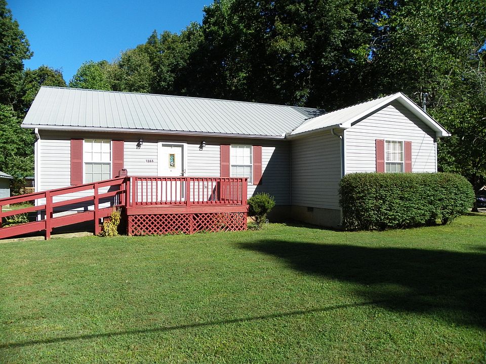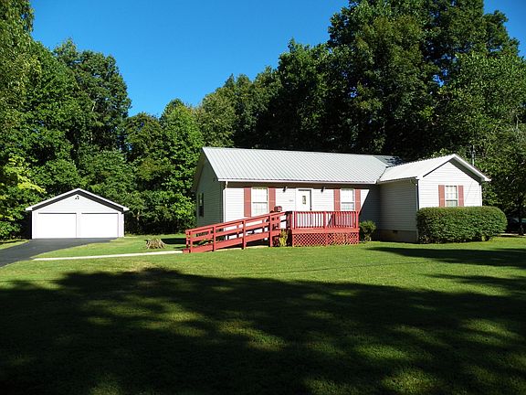Single story home in a quiet location with a great oversized detached 2 car garage which has plenty of room for 2 cars and a workshop (24X30). Well-kept with solid surface counter tops, custom cabinets, appliances in an open concept split bedroom design. Also has a jacuzzi, metal roof, paved driveway, front and rear decks in a pretty location with established yards and trees.