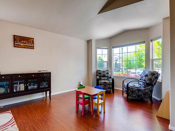 Rarely available, One level living with full Walkout basement & 3 car garage which borders open space! Beautifully open layout with vaulted ceilings & wood laminate flooring. The cozy Living room with bay window overlooks the enlarged front patio & is adjacent to the Dining room. The Kitchen features ample cabinet & counter space, a spacious island & eating space which is open to the Family room with a corner Gas Fireplace, ceiling fan & built-in entertainment area. The Master suite easily accommodates a king sized bed & includes a spacious closet & 5 piece bath. There are 2 more Bedrooms for family & friends, or one would make a great hobby room or den with its french doors. The Laundry room is conveniently located on the main level making this perfect for those not wanting to deal with stairs. The oversized garage is heated & the Walkout Basement is partially framed, ready for your ideas! Don't miss the expansive Balcony/Deck/Patios off the back as well as a sport court and huge yard