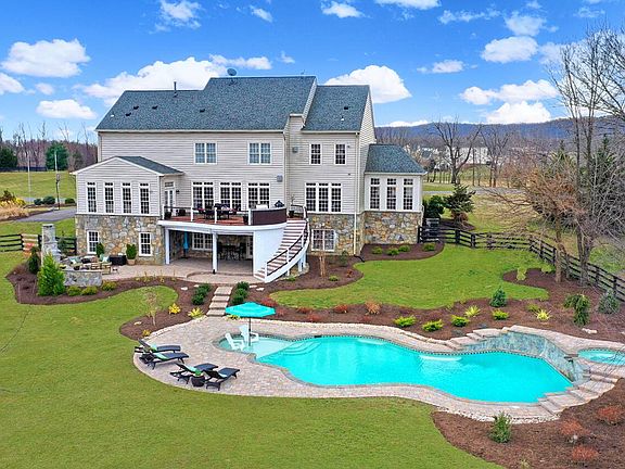 Welcome home, just in time for summer! This breathtaking colonial estate is sited on over 4 acres, fully fenced with a backyard that dreams are made of! A personal in ground pool complete with beach entry, a waterfall, heated spa, and custom color-changing LED pool lights. Encircled by a professionally designed patio and landscape for the ultimate backyard paradise. The huge composite deck is complete with an outdoor kitchen and a large stone patio with fireplace allows more time to enjoy spending time with friends and family! <br><br> Enter the flagstone covered front porch to the dramatic story foyer, flanked by a formal dining room and living room - which leads to a huge sun filled conservatory. The incredible gourmet kitchen is sure to please the chef! Professional top of the line Viking and SubZero appliances, upgraded granite countertops, a huge center island with a prep sink, seating and storage plus coffee bar – all open to a breakfast room for casual dining and the morning room with incredible views! A convenient home office with a view of the property, a spacious family room offering a cozy fireplace complete the main level. <br><br> Upstairs you’ll find four spacious bedrooms, including the primary suite with hardwood floors, a tray ceiling, a gas fireplace, his and hers walk-in closets, and a luxury, spa-like bathroom! One princess suite with a private bathroom and two additional bedrooms share a jack-n-jill bathroom. All secondary bedrooms have plush carpeting, ceiling fans, and ample closet space. <br><br> The fully finished daylight basement brings the fun indoors! A custom, personal home theater with sound system, a cozy family room with a gas fireplace, and plenty of additional space to entertain. The fifth bedroom and fourth full bathroom is located on this level providing many options for a private place for extended family or friends to rest. <br><br> This home offers over 7,300 square feet of living space, and has been meticulously maintained, with major systems being recently replaced including two HVAC systems (2022), pool filter and vacuum (2022), washer/dryer (2022), whole house water filtration system (2022), garage motors (2022), driveway (2023) and carpeting (2019). Annual service completed on HVAC and appliances to ensure they last! Nestled amid the rolling hills of Loudoun County's wine country, less than three miles to the charming town of Lovettsville, 7 miles to the MARC train for an easy commute into D.C., this home offers the best of both worlds!