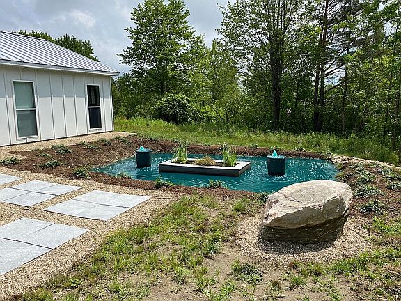 This is a one story modern contemporary minimalist home designed and built by an architect for himself for our retirement home, nestled on 3 private acres of woods in Geauga County. The home is just minutes away from shopping, restaurants and entertainment. Very private yet close to everything you would need. The peaceful Serenity Pond with fountains welcomes you on your approach to the front entry glass double doors. The focal point of the home is a 7,000 SF man made stocked fishing pond. The house plan has over 2,500 square feet of living area. The home features an open floor plan for all of the living areas that is the unifying element of the plan. Living areas are completely open and filled with light from sliding glass doors and windows. All living areas and the owners bedroom have voluminous 13-foot-high vaulted ceilings. This is a great home to entertain family & friends in. The kitchen is the hub for guests to gather and enjoy friends and good conversation. The exterior of the house is durable prefinished white Hardi board and batten siding. The interior maintains the monochromatic minimalist design with neutral gray painted interiors as the backdrop for the owner/architect's extensive collection of large scale modern custom abstract art. The home's design is based on the concept of Bringing the Outside In and the Inside Out. The same light gray porcelain flooring is used in the sunroom and for all exterior patios and walks to consciously blur the lines between interior and exterior spaces thru the floor to ceiling glass. This home is easy to fall in love with & begin the journey of living your life in a home that exudes a sense of calm & peace. - Custom exterior Serenity Pond with a planter and 2 fountain features - Custom glass walled waterfall pond in Foyer - Private Owners Suite with Walk-in Closets w/Elfa Closet Systems - Owners Bath with 8 ft floor-to-ceiling glass wall walk-in shower with multiple shower heads, Pedestal Tub, Double Sinks and Custom Cabinets - Gourmet Kitchen w/custom cabinets, sparkling quartz counters & SS appliances including separate side by side Refrigerator and Freezer, Dishwasher, Double Ovens, Electric Cook Top, Microwave, Large Island Breakfast Bar & Walk-in Pantry