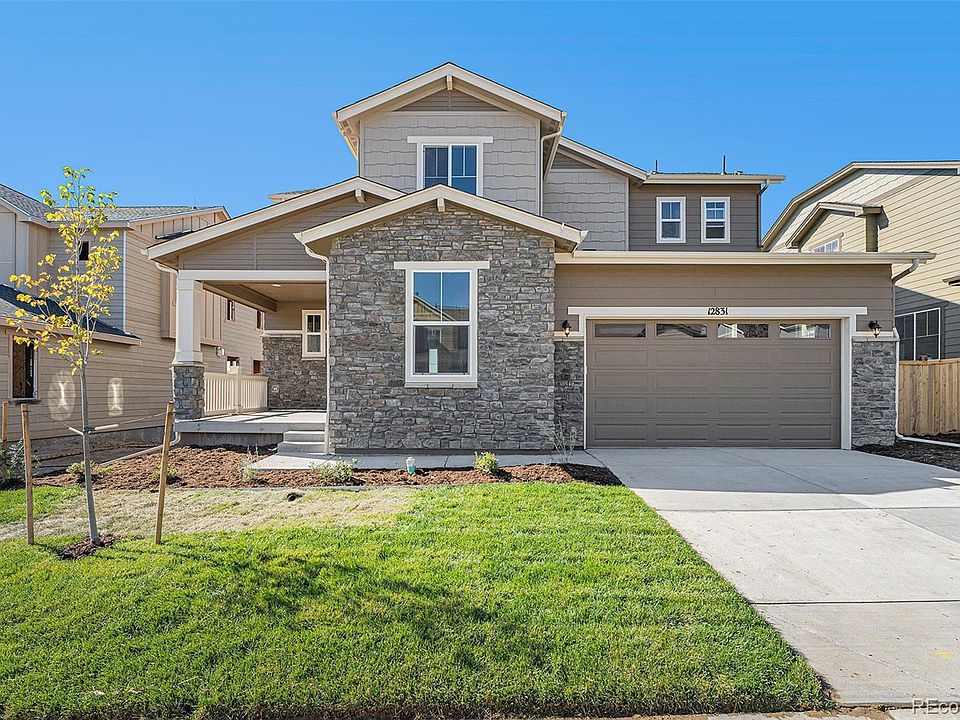 FINAL OPPORTUNITY!! MOVE-IN READY! INCREDIBLE 180 DEGREE MOUNTAIN VIEWS!!!! 4 Bedrooms, 3 car garage, home office, plus loft! Gorgeous luxury features throughout this home. Open living with covered front porch and covered deck allow Colorado indoor/outdoor living. The main floor features a wonderful private guest suite at the front of the home with en-suite bathroom complete with walk-in shower. Chef’s kitchen features white 42 inch cabinets with crown molding and hardware, kitchen island, quartz countertops, walk-in pantry! Continuous mocha color vinyl plank flooring throughout the main floor. 8 foot doors throughout the main level. Gas fireplace in the great room. Main floor office at the back of the home with multiple windows and glass french doors for privacy. Second floor loft offers an additional space for home office or play room, game room, home theater. Convenient second floor laundry room. 2 secondary bedrooms, one with a walk-in closet, sharing jack and jill bathroom with tub/shower. Impeccable primary suite!! Windows overlooking the mountain view, en-suite 5 piece bathroom with free standing tub. Dreamy walk-in closet! Enjoy Tanglewood generous open space and a new community pool with club house! Fantastic selection of nearby golf courses, lakes, parks and trails. Shop and dine in style at nearby Orchard Mall or Thorn Creek Crossing. Thorncreek Golf Course The Ranch Country Club & Golf Course, Big Dry Creek Park & Athletic Fields, Hunter's Glen Lake Park, King Soopers, Walmart, Lowe's, Sprouts Farmers Market and endless dining options! A stellar location minutes to Downtown shopping and entertainment! Tanglewood's community includes outdoor pool with club house, open spaces for family fun! SELLER IS OFFERING A $25,000 INCENTIVE WITH PREFERRED LENDER. CALL FOR DETAILS.