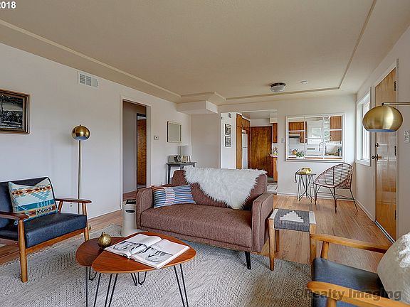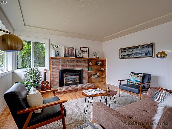 Sweet mid-century modern w/ a perfect layout, gorgeous refinished wood floors & light filled rooms. Move-in ready & low maintenance! Urban farmer's dream--huge sunny yard, fruit trees, berries, peaceful landscaping, cozy spots for gatherings, & room for an ADU. Bring the dogs to their personal heaven! Solid roof, new interior paint, newer furnace, appliances included. Energy efficient - HES 6! Open house 11/27 [Home Energy Score = 6. HES Report at https://rpt.greenbuildingregistry.com/hes/OR10071311-20181123]