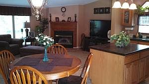 Attractive, nicely landscaped, well maintained home nestled in the spruce, pine, maple, apple and pear trees! Updates in the last 3 years are the spacious kitchen island, stove, ref., microwave, kitchen flooring, familyroom and livingroom carpet and all light fixtures. The kitchen appliances along with the washer and dryer stay with the home! All window treatments stay also. Move in ready! The home has central air, a woodburning fireplace in the familyroom, a front and back deck. A pool which can stay or go according to the buyers wishes. The detached 3.5 car garage is heated, insulated, has 220 electric, water, mechanics lift, workbench, storage shelves, an additional roll up overhead back door and a side porch for outdoor pleasures. A separate storage shed is also on the property. Kitchen:18'6x12'8; Livingroom:18'4x12'6; Familyroom:27'7x12'11; Bedroom1:18'6x14'1; Bedroom2:11'7x12'5; Bedroom3:10'3x12'6; Laundryroom:6'7x7'2.