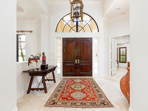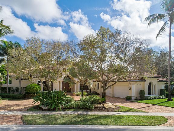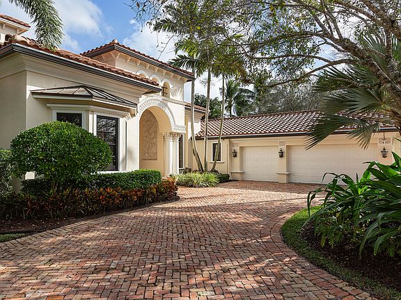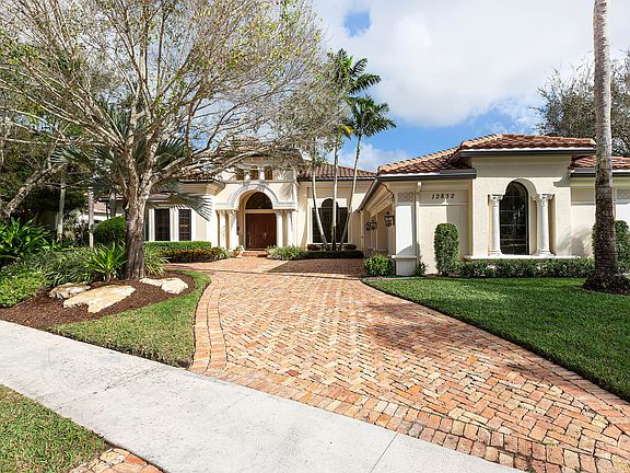 Drive up the circular Chicago brick driveway to this spectacular custom built Ecclestone Signature Home, overlooking the 14th hole of the Cypress Golf Course in one of Palm Beach Polo's most sought-after developments - Mizner Estates. You will enjoy beautiful Florida days and nights outside at the recently resurfaced pool, spa and summer kitchen. This gorgeous home is perfect for entertaining - open floor plan, sunken living area, and wet bar featuring, refrigerator/ice maker/wine cooler.