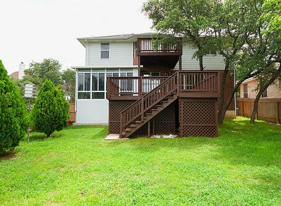 Great house in on great street in the award winning Steiner Ranch. Rare find, Panoramic Hill Country Views on almost 1/4 acre lot with extensive upper and lower decks. 4 Bedrooms,3 full baths, Guest Bedroom/Inlaw plan with full bath on Main level. Dedicated office/study, formal dining, game room,enclosed sun room and tons of storage. Zoned for top LISD schools. This house has it all plus an incredible sunset view!