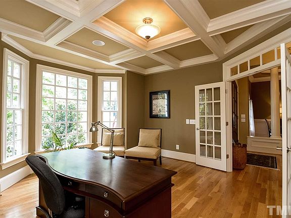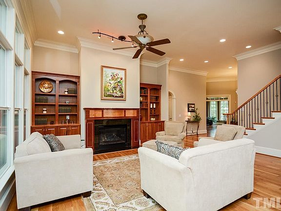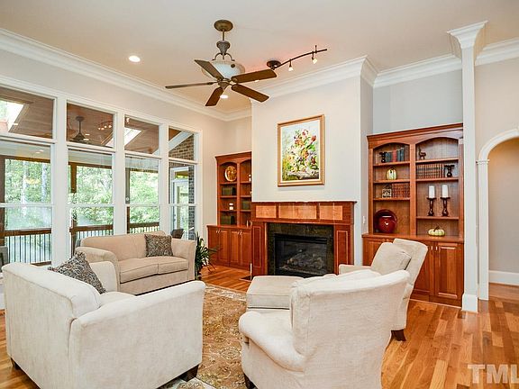 Exceptional quality custom home! Coffered-ceiling office w/double doors, trey-ceiling master suite w/access to screened porch, hearth room w/gas-log fireplace, upscale kitchen w/gas cooktop and walk-in pantry, dining room w/column accents, 12' ceilings. Large secondary BRs. Full finished basement has open recreation area w/gas-log fireplace, large bedroom, media room, wet bar, exercise room, office, and storage area. Beautifully landscaped, private lot w/"Tuscan Garden" water feature, walkways and patio.