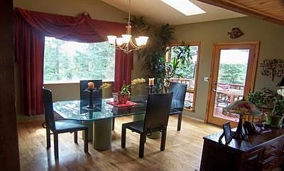 Super Cute Remodeled Home*Hardwood Floors*Open Concept Kitchen, Dining and Living Room*Updated Kitchen with Wine Cooler*Gorgeous Stone Hearth Fireplace*Vaulted Wood Ceilings with Beams* Large Office off Living Room w/ Access to Large Wrap Around Deck* Lots of Windows for Sun Drenched Dining Room and Living Room* French Doors Lead to Deck with Sunken Hot Tub and Fabulous Views* Upper Level Private Master Retreat with Huge Walk-In Closet and 5 Piece Bathroom/ Private Water Closet*Jetted Tub*Rain Shower.New Trane Furnace*Tankless Hotwater Heater* Smart Water System* Sink in Laundry Room Views of Pikes Peak and Mt. Evans. Nice flat lot for horses. A Fenced Yard with Storage Facility. Plenty of Parking for RV's and Toys* Great Location* Quick Commute to C-470. One bedroom is non conforming with no closet-- perfect for office. Don't miss this one!