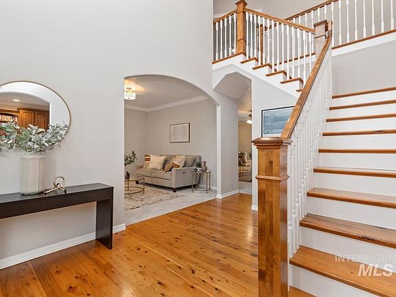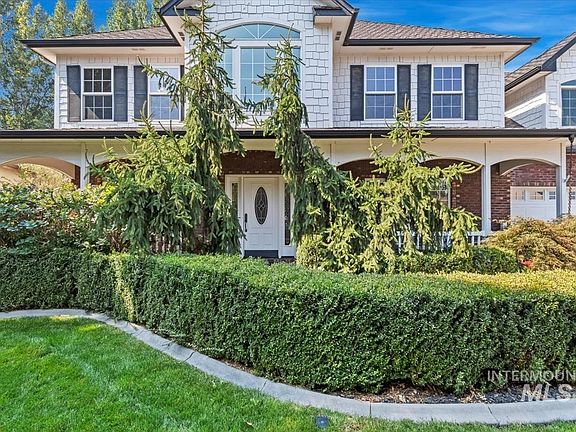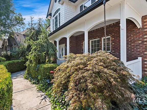 Welcome to this elegantly updated home, minutes from all Boise has to offer but tucked away on a tranquil cul-de-sac. Manicured, mature landscaping and a lovely porch set a welcoming tone. Step inside to discover a stunning library with custom cabinetry that doubles as an office or den. The heart of the home features an updated kitchen with modern appliances, quartz countertops, stylish backsplash, gas stove, and large pantry. An expansive mudroom and laundry area connect to the 1,000+ sqft garage. Generously-sized bedrooms include a luxurious primary suite with a remodeled en-suite bathroom and dreamy walk-in closet. The versatile fourth bedroom, with its own en-suite bathroom, can also serve as a bonus area. Outside, enjoy a private backyard oasis with a spacious patio, bubbling fountain, and lush landscaping—ideal for entertaining.