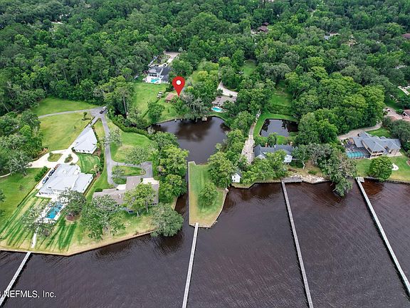 Beautiful Brick Riverfront Home, on 1.28 acres, with access to deep water via a one-of-a-kind inlet pond! The long, private drive leads over to this unique property that boasts full, thick grass and sprinkler system, mature trees, and no shortage of wildlife! Enjoy stunning pond and river views through huge Anderson windows and doors. Entertain guests, or just relax on the back deck overlooking the St. Johns. Upgrades inc: 3rd full bath, fireplace overhaul, Pelican water system, security systems, exterior lighting throughout, interior paint, full french drain system, shored up bulkhead, and more! 3-car garage w/ storage loft! Mandarin Road, a designated Scenic Drive, takes you to amazing local shopping & dining options, Historical Parks, boat ramp, beaches, walking & bike trails and more!
