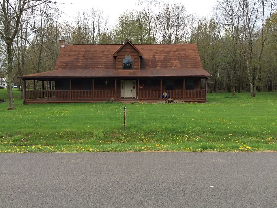 Just under 4 acres of rustic charm on a corner lot, 3br/2b home, wrap-around-porch, loft master suite, screened in back porch. Detached, insulated garage with loft. Oversized eat-in kitchen, cathedral ceilings in family room.