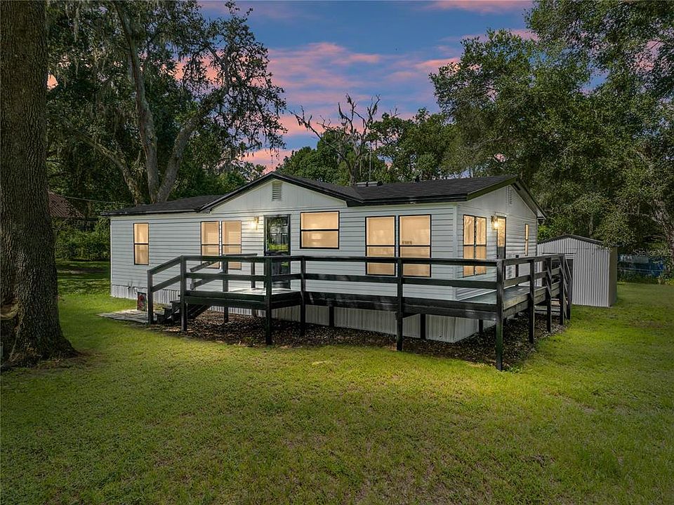 Unwind in style on your own acre of Paradise! This beautiful 3 bedroom, 2 bath home has just been given a complete makeover from head to toe. No expenses spared on this turn key home. Brand new roof, brand new ac, new floors, new updated bathroom, new updated kitchen with backsplash and epoxy countertops, new appliances, new paint inside and out, the large, freshly painted wrap-around deck overlooks the tranquil yard with plenty of shade from mature trees, new fixtures and much more. A 15x12 living room offers ample space for everyday needs. All three bedrooms are generously sized, with the primary suite featuring stunning finishes, including several storage closets and a new ensuite bathroom with barn door entry, dual sinks, trendy fixtures, and a walk-in shower. The second bathroom has also been given a complete remodel and offers a tub/shower combo with decorative tile, a new vanity, toilet, and fixtures. This opportunity is on a private road with no HOA or CDD fees and has AR zoning. Bring the animals! There are no water or sewer bills, as this property is on a well and septic system. Call us today to learn more about this lovely home near downtown Dade City, the Mirada Lagoon, and several other local hotspots. CASH buyers only unless the buyer is open to private financing. The only reason is because the home was moved here in 2006, traditional financing won't lend on this home. There are no other issues that would prevent it from being financed- this home is turn key.