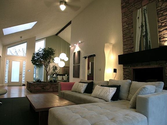Designer-owned home is a must see! Fully updated Modern ranch with top-o-line Stainless Steel appliances, designer finishes and modern materials. Custom built home boasts Better Homes and Garden featured KIT, Interior Design Magazine's Eco-Friendly Product of the Year wall coverings and designer elements made just for this home. Huge windows and skylights flood the interior with light and compliment open floorplan. Bring your checkbook because this place is HOT!