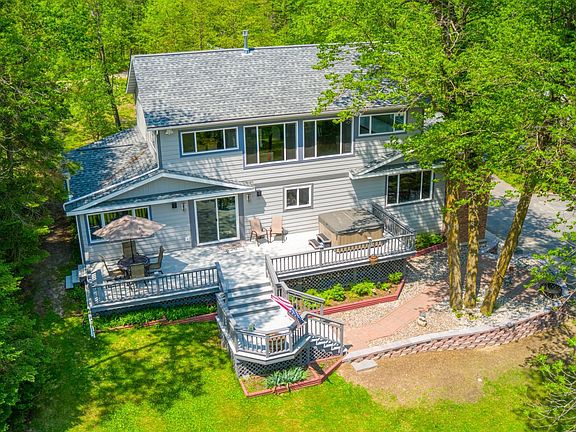 This custom built retreat is situated on the shores of Lake Movil. Offering a gentle slope with beautiful views from nearly every room. The main level is where function meets understated luxury. Great semi open concept, natural light, and the right flow for entertaining. The master suite features dual closets, sinks, a jetted soaking tub and walk-in shower. There is a guest room on the main and another full bath. Upstairs you will find a stunning bonus room and 1/2 bath. The current owner uses this space as a formal living room and office. Outside you will find beautiful landscaping, paved drive, seasonal guest cabin with kitchenette and 3/4 bath. This property has exceptional 30x40 shop with 1200 square feet of additional living space. With custom metallic epoxy flooring and cabinets, beverage and entertainment area, ¾ bath, and in-floor heat, it's not your average “man-cave.” If lake living is what you are looking for this may be the one to call HOME.
