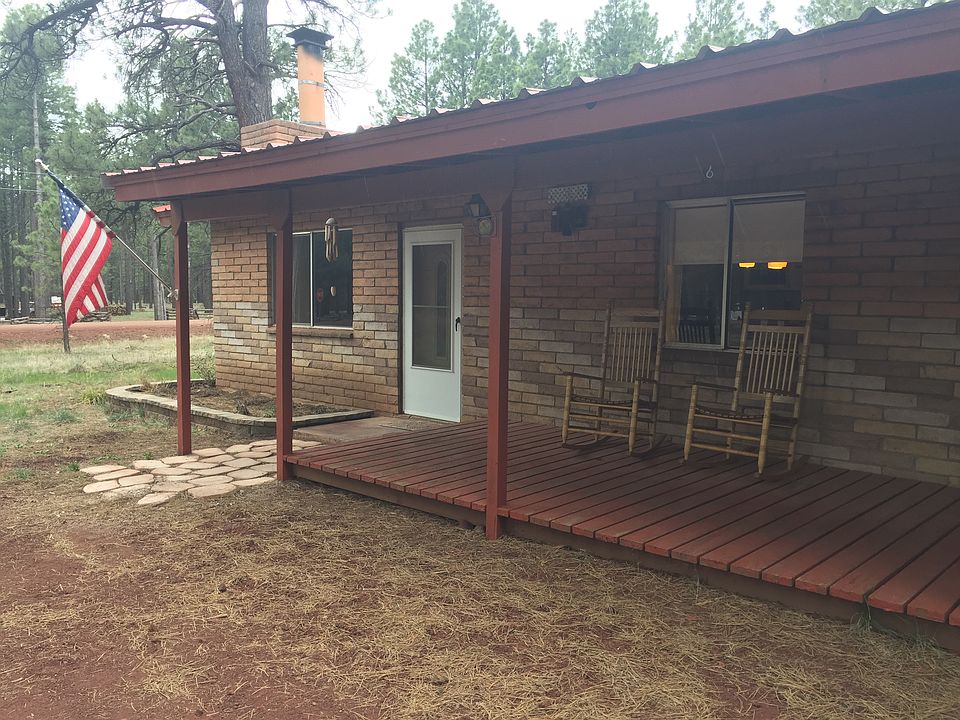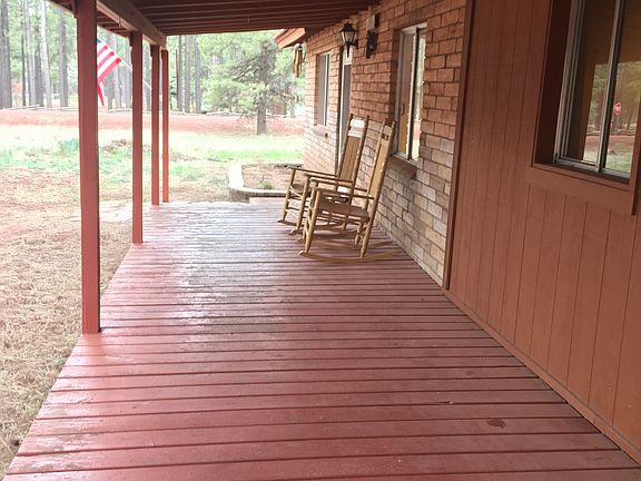 Whether this is your first home, vacation rental or summer retreat, you will enjoy hearing the wind whispering in the Ponderosa trees while sitting on the covered deck. A corner lot with a circular driveway which leads you right up to the front door. Very clean with an updated bathroom and a kitchen with its own modern barn door, this home has endless possibilities to make it uniquely yours. The brick of the home gives it its own personality. 3 bedrooms, 1 bath, cozy living room with fireplace, with an open concept kitchen is a must see!