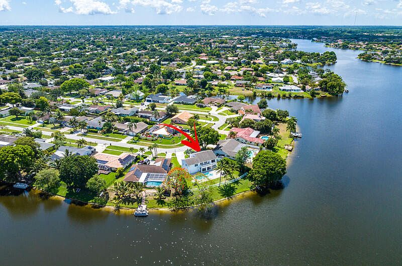 Nestled on a prestigious lakefront point lot in the heart of Wellington, this stunning five-bedroom, four-and-a-half-bathroom home epitomizes luxury living. Boasting a sprawling two-car garage, a sparkling pool, and meticulous attention to detail, this residence offers an unparalleled opportunity to own a true trophy property.From the moment you step through the grand entrance, you are greeted by an atmosphere of elegance and sophistication. The spacious layout seamlessly blends modern design with timeless finishes, creating a harmonious balance between comfort and style.The gourmet kitchen is a culinary masterpiece, featuring top-of-the-line appliances, custom cabinetry, and a large island perfect for entertaining. The adjacent living areas are bathed in natural light with panoramic views of the serene lake adding to the sense of tranquility.