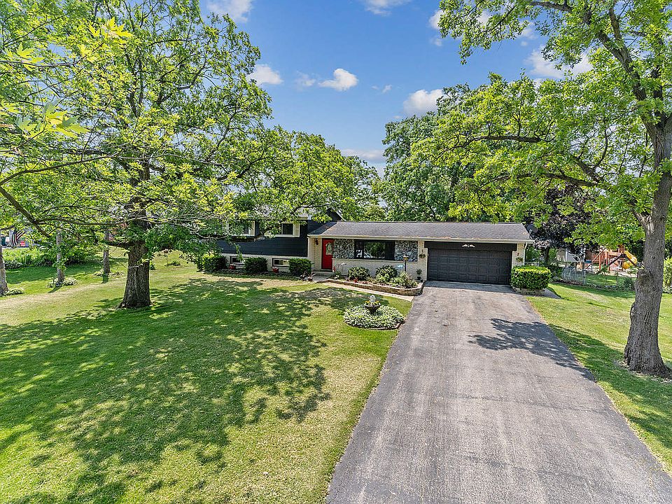 Incredibly charming residence situated on over a half acre of verdant grounds. Striking curb appeal set amidst towering trees and flowering beds. Inviting foyer opens into a home that has been well cared for. Formal living with a large bay window with tons of windows for natural sunlight and soaring, vaulted ceiling accented with wood beams. Spacious kitchen offers plenty of cabinetry and counter space with a quaint eat-in area for additional seating. Second level offers a sizable master bedroom with plenty of storage and gleaming hardwood flooring. Two additional bedrooms on the second level and all share a full bathroom. Lower level offers recreation, family area, FULL bathroom, laundry and storage. Cozy enclosed sunroom with views of the private acreage and an outdoor shed for extra storage. Call for your private showing today.