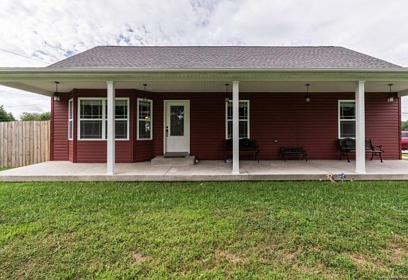 Energy-efficient & spacious, this custom-built Infinity Home is a rare opportunity. Vaulted ceiling floor plan features an extremly open great room, kitchen, and dining area. Master suite boasts a tray ceiling & his/her walk-in closets. Master bath contains double sinks, a toilet room, fully tiled stand-up shower, & separate corner tub. Hardwood floors, large bedrooms, custom paint, vaulted ceilings & rounded archways accentuate the beauty of this home. Gorgeous kitchen contains plenty of countertop space feat. breakfast bar, striking cabinetry & lighting, and stainless steel appliances. Dining Room boasts double doors leading to the back porch, which overlooks the privacy-fenced backyard. A full unfinished daylight basement provides an over-sized storm shelter, and is framed for 2 additional bedrooms,family room & another full bathroom (tub & shower already installed). Large 2 car garage/pole barn included, plus front covered porch across entire length of house for outdoor enjoyment!