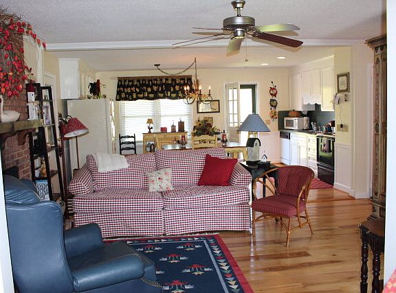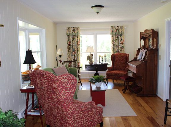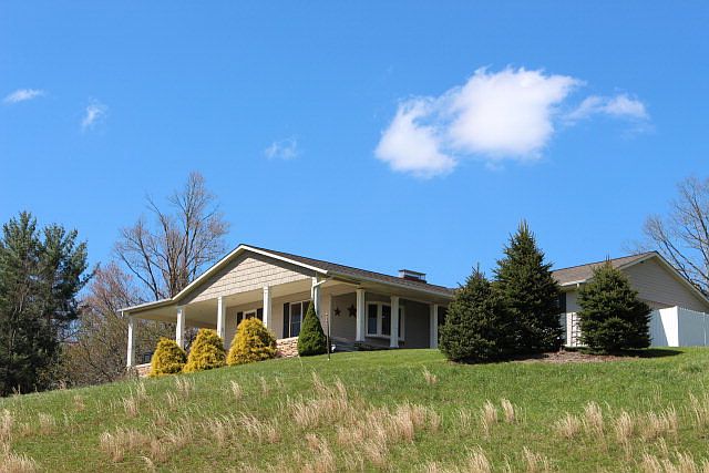 COUNTRY RANCHER WITH VIEWS! This spacious, low maintenance ranch-style home offers an open floor plan all on one level. Features include gleaming ash hardwood flooring in common areas; roomy eat-in kitchen; den with brick fireplace (currently w/gas logs but could be converted back to wood-burning); sunny & bright living room with bay window; master bedroom with walk-in closet and small, private bath; three additional bedrooms; second full bath; and 1-car over-sized garage. Enjoy the great outdoors with a wrap-around concrete porch on three sides or the concrete pad sitting area providing beautiful views of mountains, pasture and stream. Beautiful yard, lots of perennials and plenty of room for gardening! Includes small shed. Beautiful furniture/furnishings negotiable. Convenient location with easy access to West Jefferson, Boone or Wilkesboro.